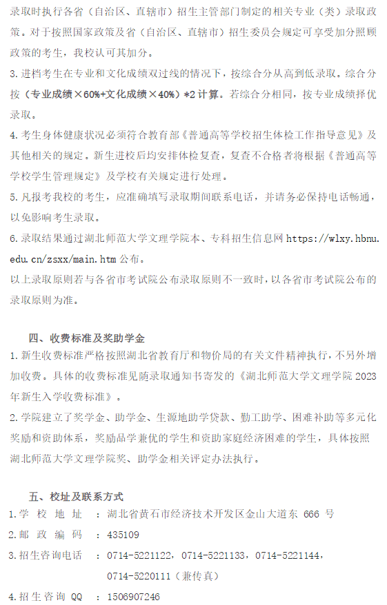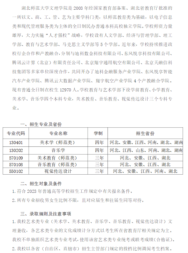 湖北师范大学文理学院2023年艺术类招生简章
